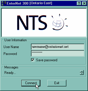 3. Make sure your username (e.g. myname@ontarioeast.net) and password are