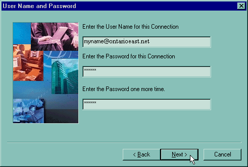 4. Enter your Ontario East email address (eg. myname@ontarioeast.net) and your