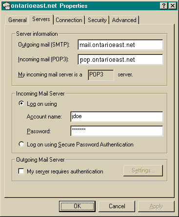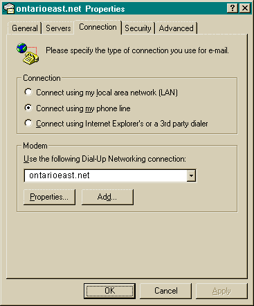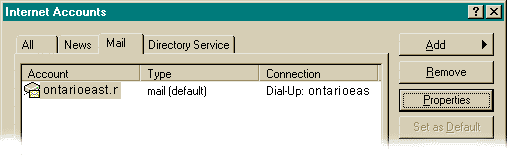 Click on the mail tab at the top and then click on "Properties". Match the following screens to what you see on your computer and fill the appropriate boxes with your personal and account information.